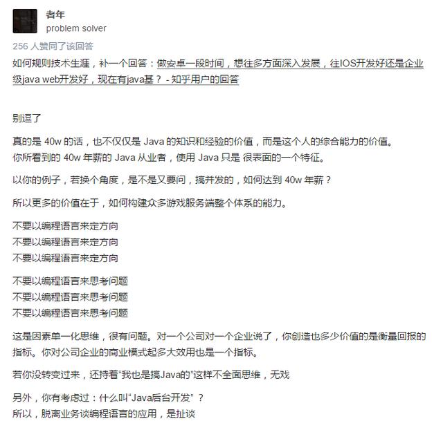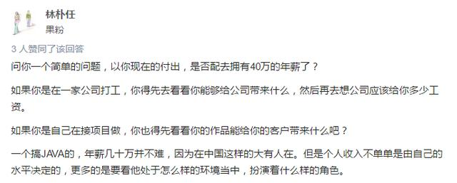 今天小编跟大家分享一个java学习者都很关心的一个问题,那就是java年薪40万需要什么样的水平,毕竟现在学java的很少有那种情怀或者喜欢这行的,大都都是奔着薪资去的,也就是常说的,升职,加薪,迎娶白富美,走向人生巅峰,那啥,迎娶白富美大约可以省略吧!今天正在逛论坛的时候,正好看到有很多人在讨论这个问题,所以也想分享给头条上的朋友们,大家可以踊跃发言,当然也希望有年薪40W程序员出来现身说教!