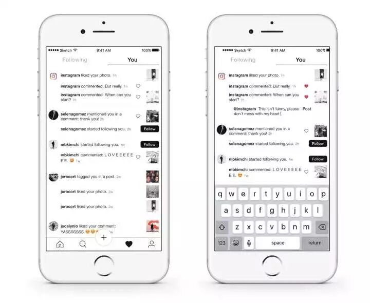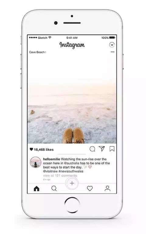 说实话,我喜欢 Instagram 当前的设计。为了增加极简主义,我对查看图标做了一些轻微的改变,并添加更多的负空间中,以保持设计的一致性。