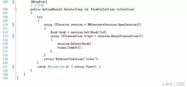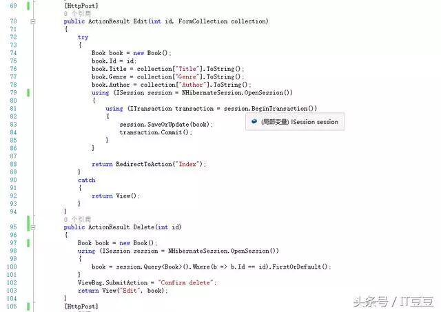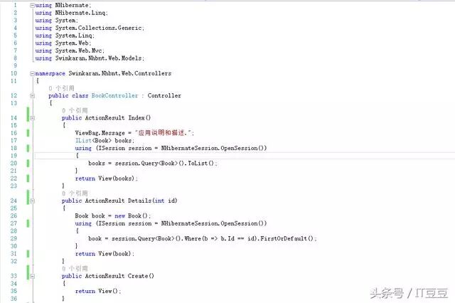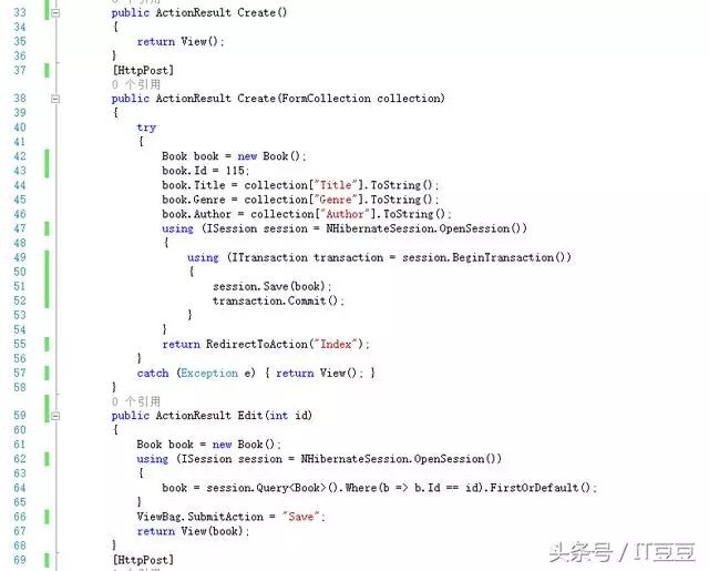 BookController类演示了如何使用已创建的NHibernae会话执行CRUD。