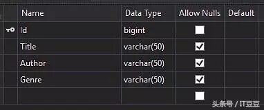 在SQL Server本地数据库中创建一个名为BookStoreDB的新数据库。创建一个名为Book的表,如下所示