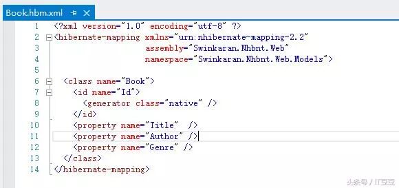 创建一个名为Mappings的文件夹并创建一个新的xml文件,将其命名为Book.hbm.xml。重要的是让hbm是文件名的一部分,表示该文件是一个映射文件。将“嵌入式资源”定义 为此xml文件的“ 构建操作”。此文件的目的是在模型类和数据库中的相应表之间创建映射。