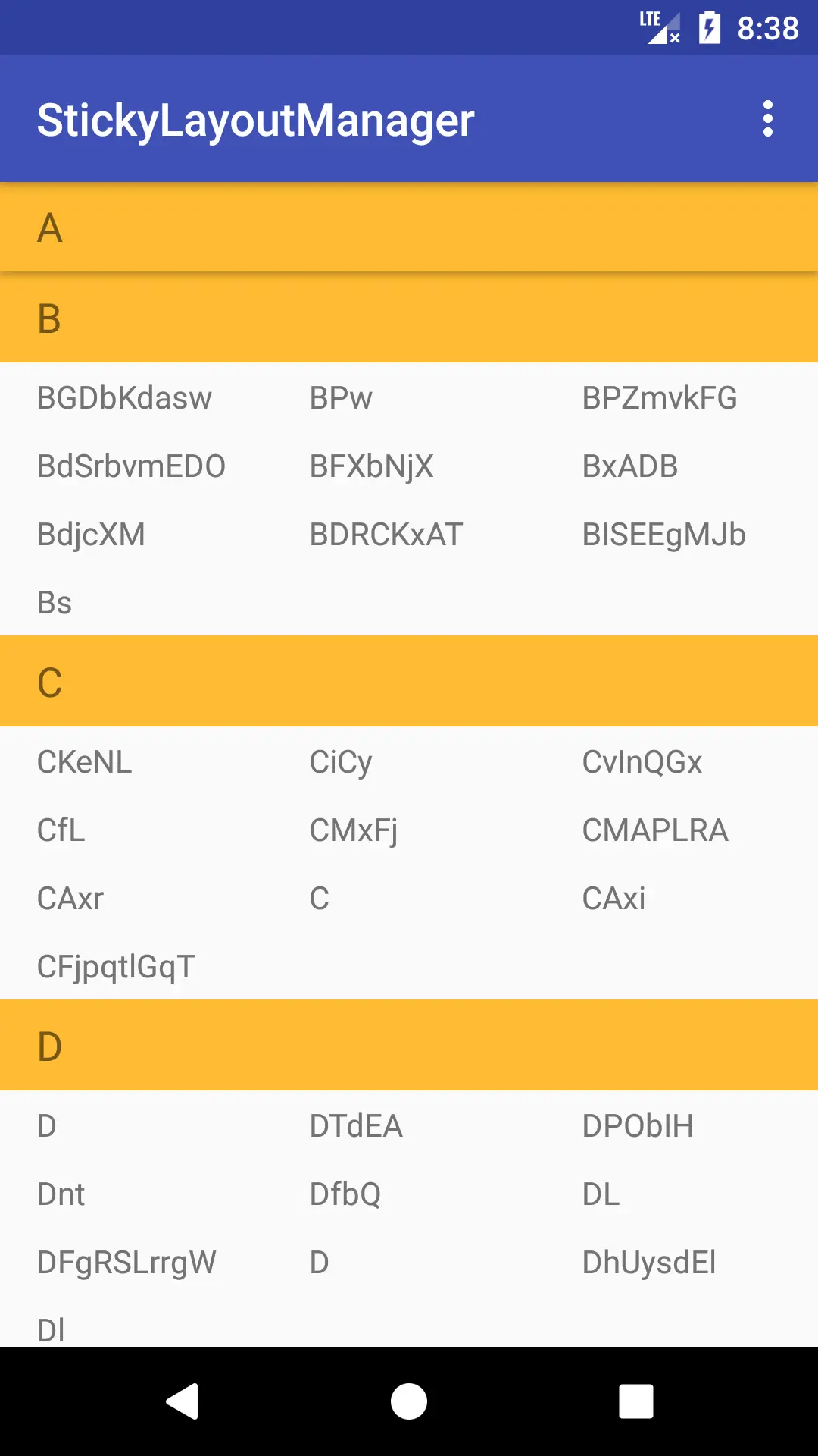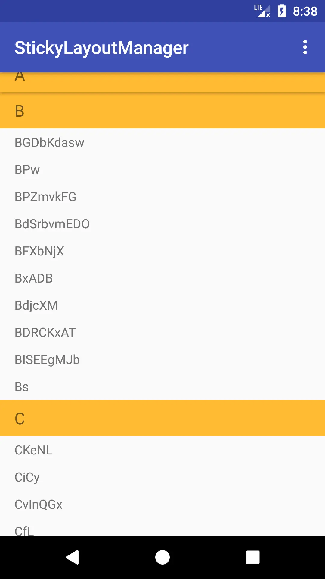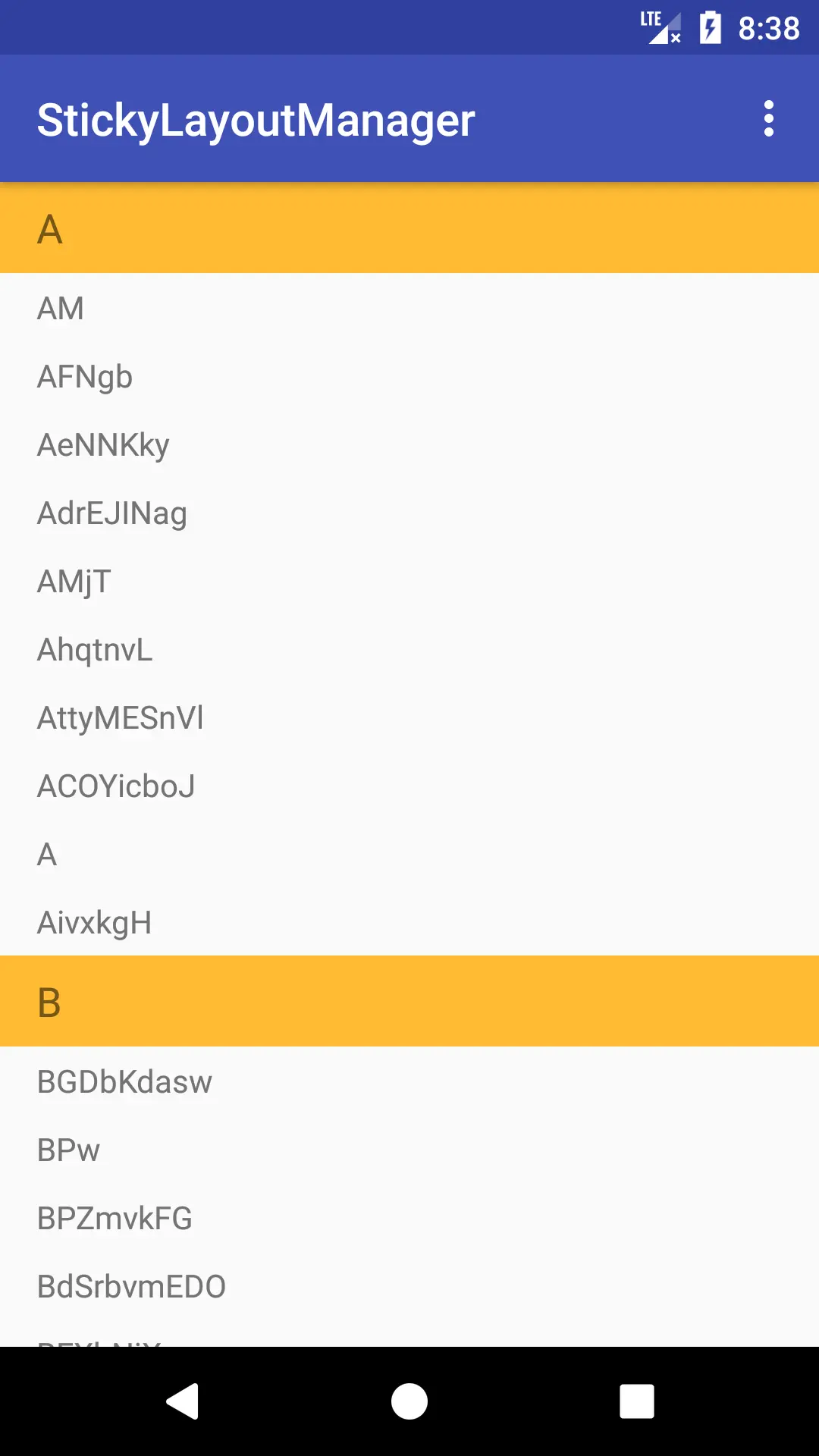 很多 App 都被设计了分组列表有粘性条目的效果,而现在我们开发安卓,基本都用上了RecyclerView,这里介绍的这个开源项目就是在RecyclerView上实现了这个效果,让我们看下效果图: