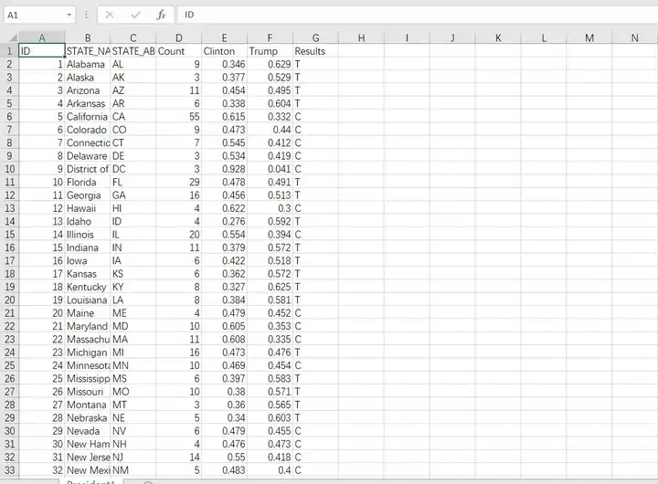 (STATE_NAME,STATE_ABBR,Count,Clinton,Trump,Results);