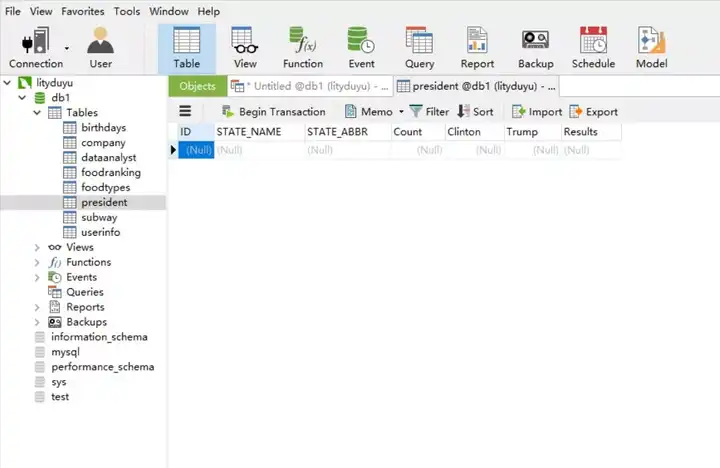 在导入MySQL之前,需要在指定数据库中先建立空表,以备之后导入。