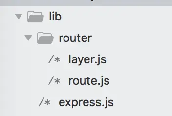 和上篇文章不同的是,我们引入了route.js。目前源文件总共有三个,express.js, router/layer.js, router/route.js