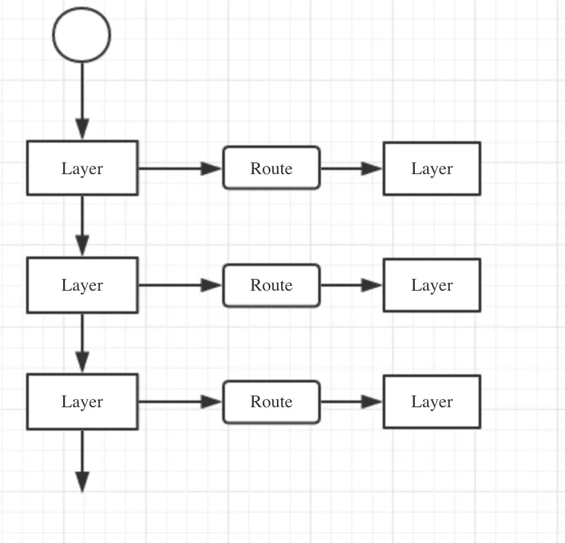 也就是说,当我们调用app.get(path, fn)的时候,Router创建了一个route进行了处理,同时把这个route的dispatch挂载到一个新的layer上,然后把这个layer推送到自己的stack中,大概是这样的结构