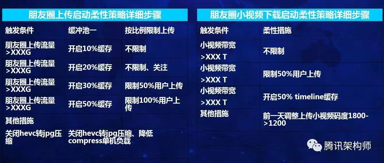 第二层是按业务特性柔性,即从业务层面通过降低图片视频清晰度、延迟用户更新等方向降低系统的负载。下面主要详述业务柔性