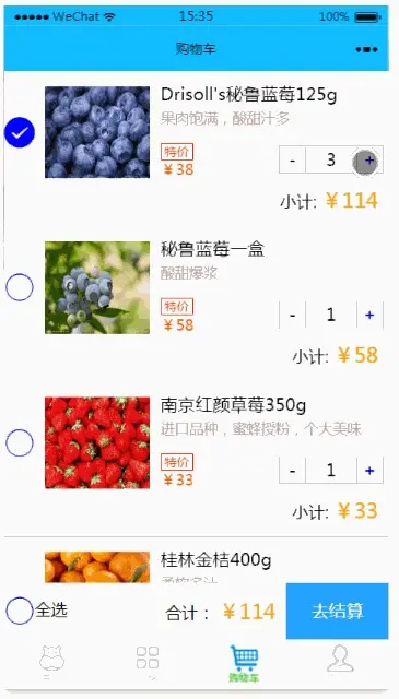 购物车中的操作无非是些加加减减,需要自己不断调试,找出哪里不合常理通过view,button里的bindtap等操作,实现对商品信息的修改,购物车状态的处理