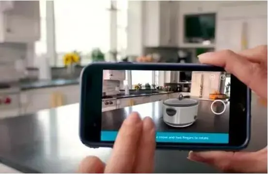 其次是在家具、厨具等家居产品的线上应用。从目前的家居市场来看,定制家居的热卖预示着个性化消费需求已经成为当下家居消费的主流。早在2013年,宜家就推出一款通过打开摄像头就能看到家居在家中是否符合自身要求的互动产品。而此次伴随着iOS11上线的“Ikea Place”应用及其AR功能,更是满足了消费者在家居上自我设计的个性化需求。消费者只需扫描他们准备放置家具的地方,通过浏览清单的列表将产品移动到指定的位置就能看到家居产品在家中的3D效果图。