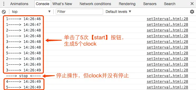 如果不断的单击【start】按钮,会断生成新的clock。