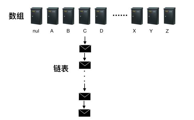 还是举个栗子:一个工厂有500号人,下图用两种方案来存储厂里员工的信件。