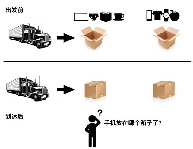在回答这个问题之前先看个例子:小明打算从A市搬家到B市,拿了两个箱子把自己的物品打包就出发了。