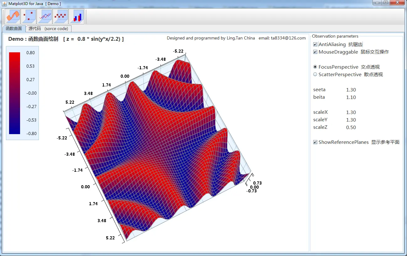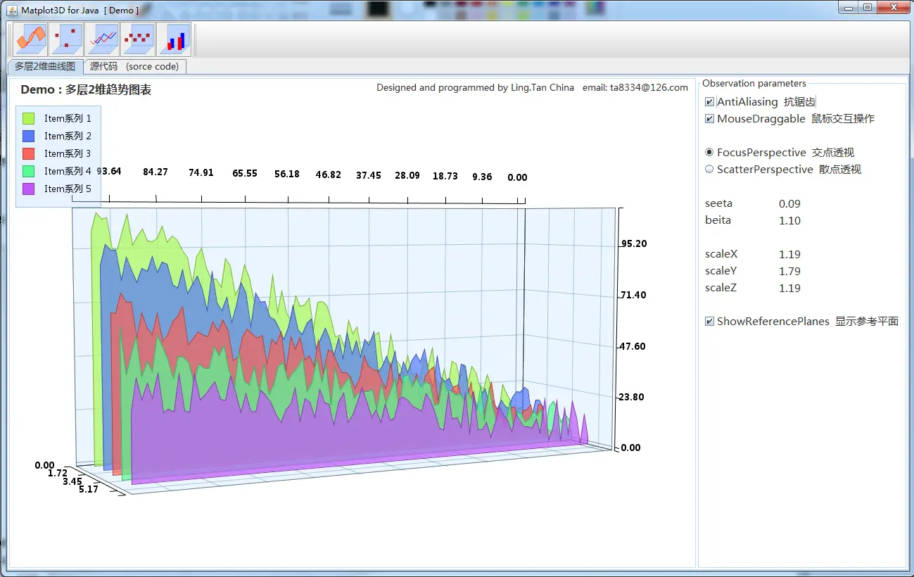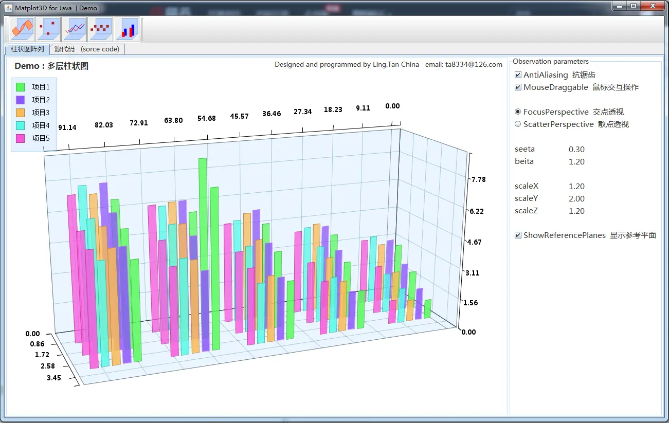 Matplot3D for JAVA是一个基于JAVA SE 1.5环境开发的工具包。以jar包的方式存在。它提供易于使用的API,可以方便的生成3维效果的各种图形图表。可用于数据的可视化和数学分析等领域。支持交互操作,使用鼠标在现实趋于拖动以及使用鼠标滚轮能实时改变观察角度和缩放比例Matplot3D for JAVA是一个基于JAVA SE 1.5环境开发的工具包。