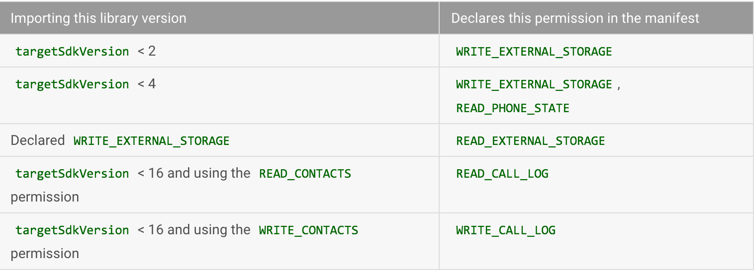 当library工程的targetSdkVersion比主工程src/main中的大时,合并过程会增加一些权限保证library工程能正常运行