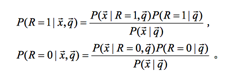 分别表示当返回一篇相关或不相关文档时文档表示为x的概率。