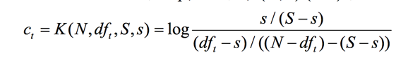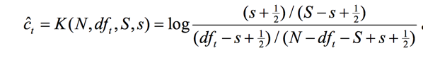 在实际中,我们很难知道t的相关文档有多少,所以假设S=s=0,所以: