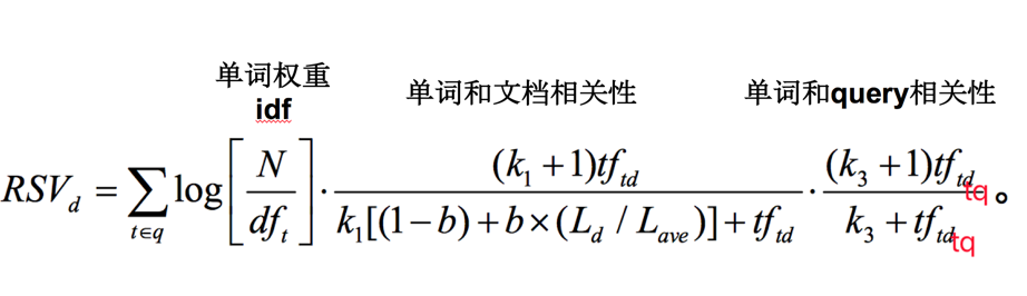 其中,tftq是词项t在查询q中的权重。这里k3 是另一个取正值的调优参数,用于对查询中的词项tq 频率进行缩放控制。