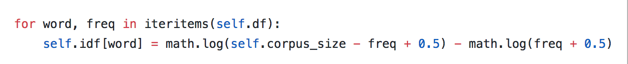 gensim在实现bm25的时候idf值是通过BIM公式计算得到的: