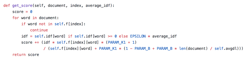 最后对于每个单词的分数我们做一个求和,就得到了query和文档之间的分数。