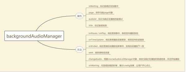 - 音频管理对象,即backgroundAudioManager,负责管理音频的播放,其中只有changeAudio方法具有修改音频的权限