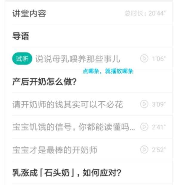 - 课程管理:进入某个课程的播放页面,获取全部音频列表,但暂时不播放。