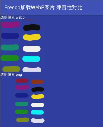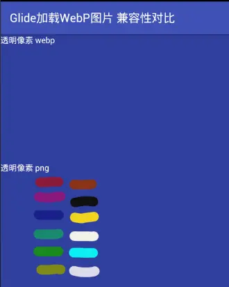 4. WebView 在WebView上,笔者尝试了透明背景的WebP,其表现与Native一致,Android 4.3 以下版本并不支持