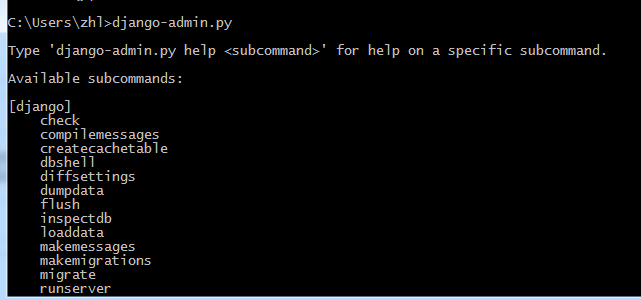 看到这,就是成功了。如果报错,可以再加一个环境变量配置:D:\software\python\Lib\site-packages\Django-1.11.7-py3.4.egg\django\bin(注意,前提是你的安装路径跟我一样,不一样的话需要使用你的Django安装路径)