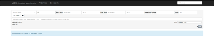 zipkin-server单独启动后,就可以看到链路监控页面了,此时由于没有收集到任何链路调用记录,显示如下: