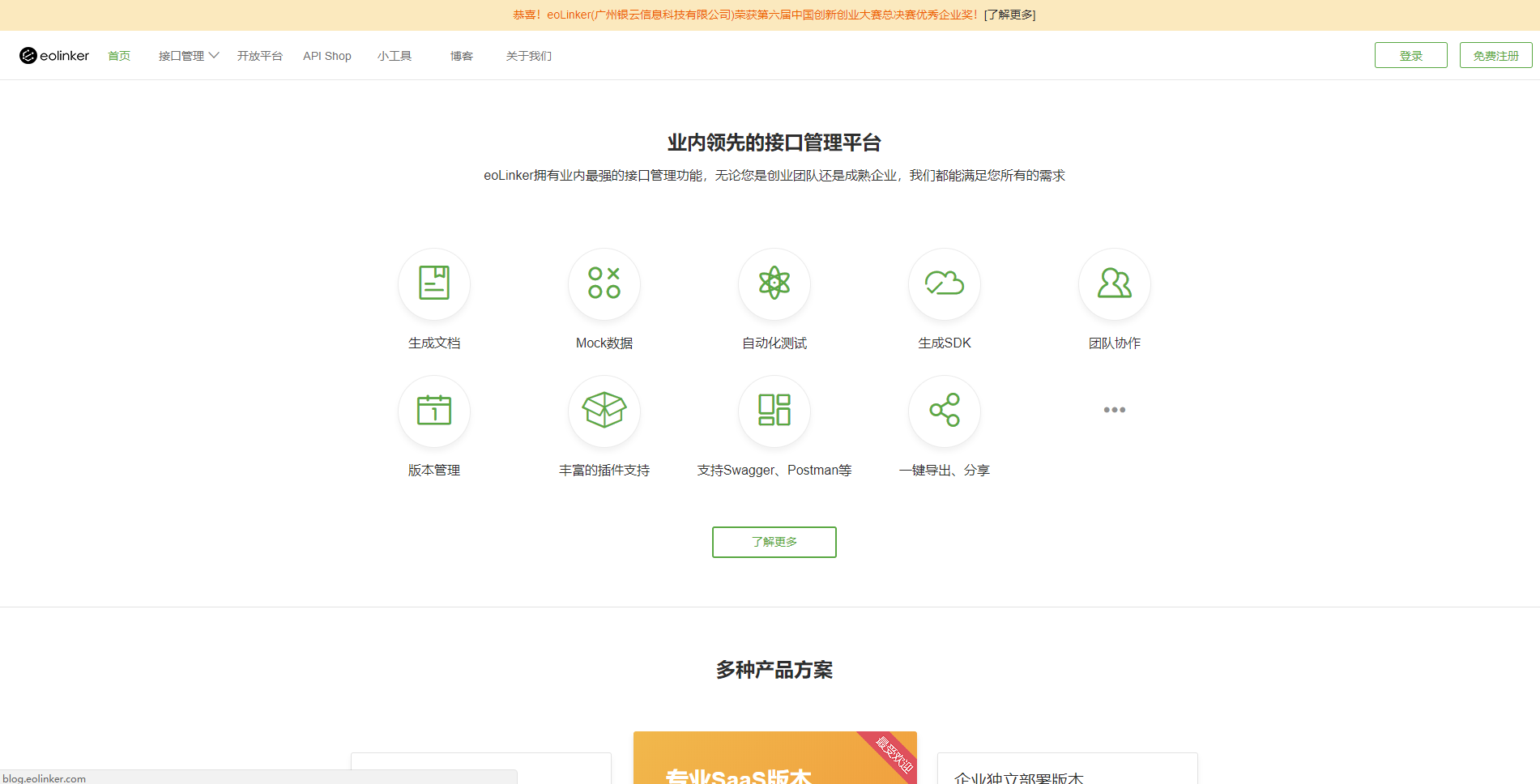 产品体验官网:www.eolinker.com(尽情疯狂体验,不要客气)