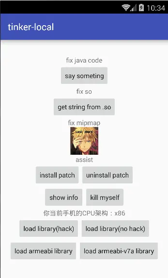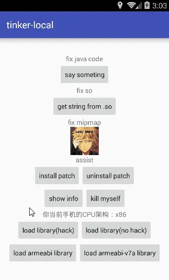 TinkerLoadLibrary.installNavitveLibraryABI(this, CPU_ABI);