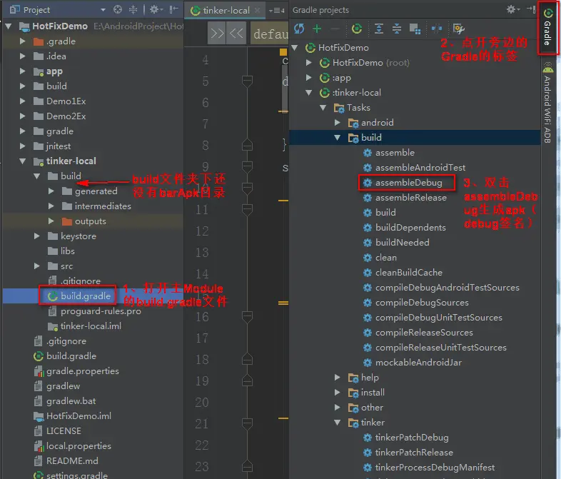 因为调用tinker的release打包需要用到签名文件的信息,所以还必须在app的build.gradle中配置好签名文件。