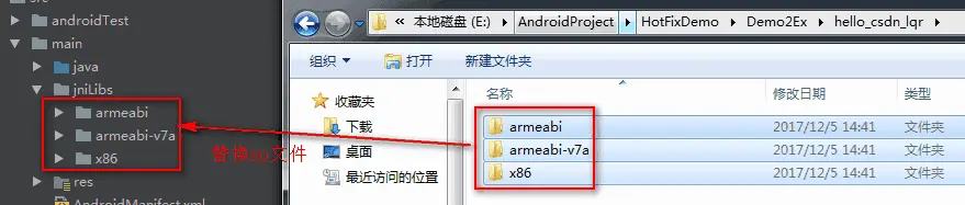 这就是Tinker的lib匹配规则,在生成补丁的过程中,它会去把符合这个规则的库文件拿出来与基础包中的库文件进行匹配,从而将有差异的库文件放入到补丁包中。而Tinker官方Demo的配置中是没有"src/main/jniLibs/*/*.so"这一段的,这将导致Tinker在产生补丁包时不会去检查src/main/jniLibs目录下的文件变化,进而补丁包中不会包含修复好的so文件,这很重要,切记。
