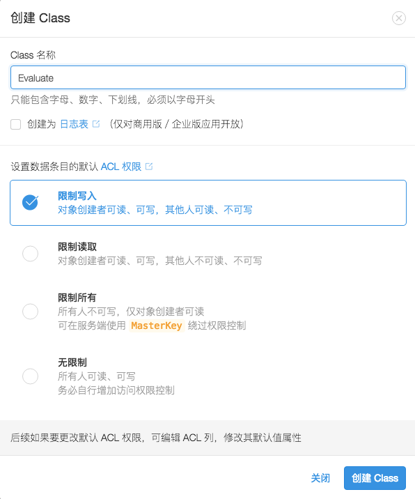 先创建对象 evaluate,然后通过 set 方法设置成员变量值,最后调用 save() 方法提交数据到 LeanCloud: