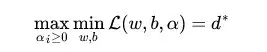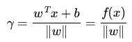 而超平面(w,b)关于 T中所有样本点(xi,yi) 的函数间隔最小值(其中,x是特征,y是结果标签, i表示第i个样本),便为超平面(w, b)关于训练数据集T 的函数间隔: