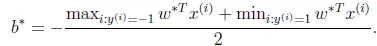 换言之,在进行分类的时候,遇到一个新的数据点x,将x代入f(x) 中,如果 f(x)小于0则将x的类别赋为-1 ,如果f(x)大于0则将x的类别赋为1。