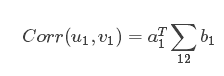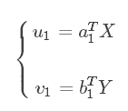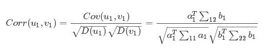 我们要做的是寻找a_1 b_1使相关系数最大,同时要考虑前面说到的约束条件D(u_1) = D(v_1) = 1,它能防止结果重复出现,则相关系数变为,