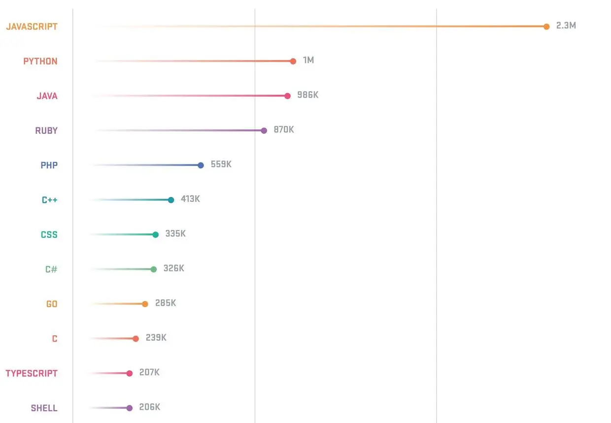 我们知道了自己的技术方向后,有人肯定这个时候会问了“我找到自己的学习方向了,比如学习服务端技术,但是很多语言都可以做服务端。这个该怎么办?”我的做法是根据GitHub的数据来判断。