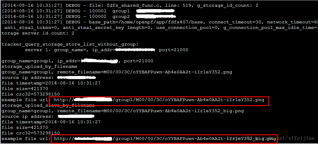 7. 启动storage: /usr/local/bin/fdfs_storaged /etc/fdfs/storage.conf,如果出现错误,可以到步骤5修改配置文件时设置的目录的log目录下查看具体错误原因。