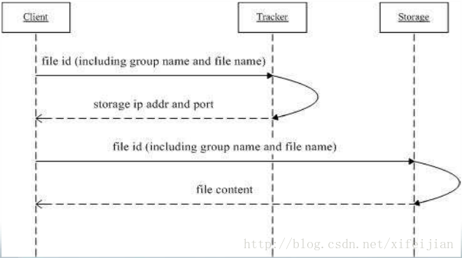 首 先客户端 client 发起对 FastDFS 的文件传输动作,是通过连接到某一台 Tracker Server 的指定端口来实现的,Tracker Server 根据目前已掌握的信息,来决定选择哪一台 Storage Server ,然后将这个Storage Server 的地址等信息返回给 client,然后 client 再通过这些信息连接到这台 Storage Server,将要上传的文件传送到给 Storage Server上。
