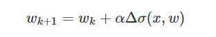其中,αα为步长,Δσ(w)Δσ(w)为σ(w)σ(w)函数梯度。关于梯度的推导请参考这里。作者的数学能力有限,就不做说明了。