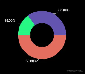 比例集合拿到了,接下来,我们去循环这个比例值,然后将比例值乘上360度,计算出角度值,供drawArc的sweepAngle使用,但是,我们还缺少一个startAngle起始角度, 我们可以定义一个起始角度为0度,然后每次根据计算出的角度值sweepAngle去累加起始度数,用代码来实现下