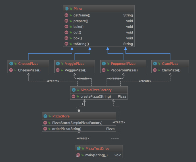 从下面的UML图中就已经可以直观上看出:简单工厂是实现直接的实例对象。