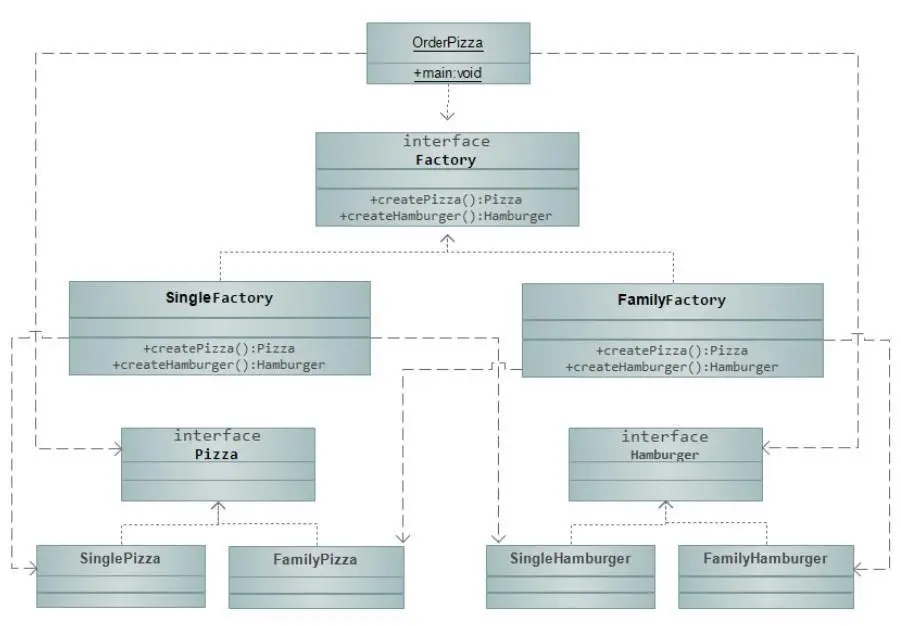 抽象工厂模式的简略类图如下: