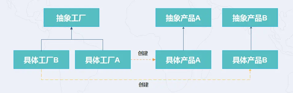 - 抽象工厂创建的是抽象产品–提供的是抽象方法(