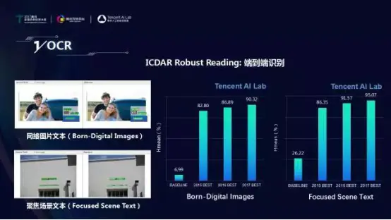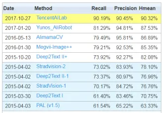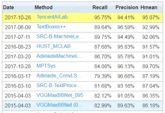 近期我们向OCR的ICDAR Robust Reading竞赛的最终目标(端到端识别,即采用端到端的方法识别图片中的文本)发起冲击,并取得突破,在上述两大重要场景的端到端识别上也都获得第一名。值得一提的是,迄今为止我们在这OCR的两大重要场景上都实现了大满贯,超过了该领域的众多强劲对手(百度、阿里、商汤、旷世科技、和各大高校),囊括了所有的6项冠军(忽略已经被淘汰的分割任务)。