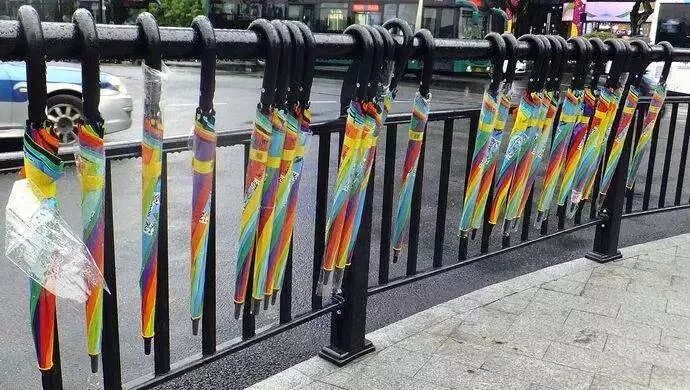 我们了解到的情况是,今年2月起,共享雨伞企业陆续登场,雨伞主要放置在地铁、公交站、商业区等,运营模式分“无桩”和“有桩”两种。前者随用随取,后者要找固定机器借伞。