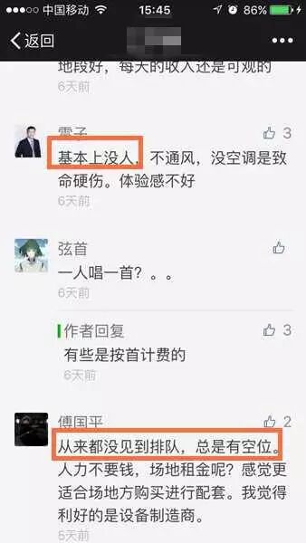 重要原因是收费太高。据15分钟20块的收费标准,唱一首歌平均得付6-8元,这导致大家选歌时普遍产生焦虑心情,在脑中拼命回想,还有哪些歌前奏间奏短?大数据告诉我们,在使用迷你KTV时,唱《红日》最划算,唱《加州旅馆》明显浪费钱。