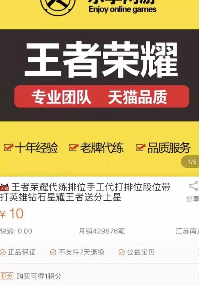 在淘宝搜索“王者代练”会跳出近千家店铺,排名靠前的销量都很可观,有店铺可实现每月40多万单。据悉,该业务甚至已成为一些游戏打手的主要收入来源,做得好月入5万,而这些代练者主要是大学生。