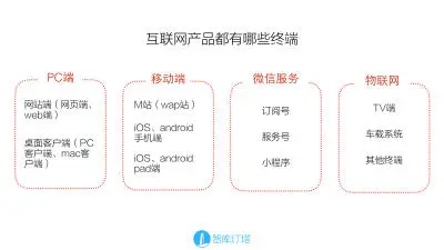 刀叔也讲了,如何进行用户终端形态的选择。受资源的限制,选择合适的终端,对于一个新产品无疑是更好的推广,而随着产品发展,不同的终端针对于处于不同使用场景的人群,内容和展现方式也会有所区分,也可以将不同终端相互导流,增加用户粘性和用户量。其实不同终端的展现的方式,最终的目的是产品发展的需要,永远要先抓住最核心的使用场景和产品发展实际状况来做。