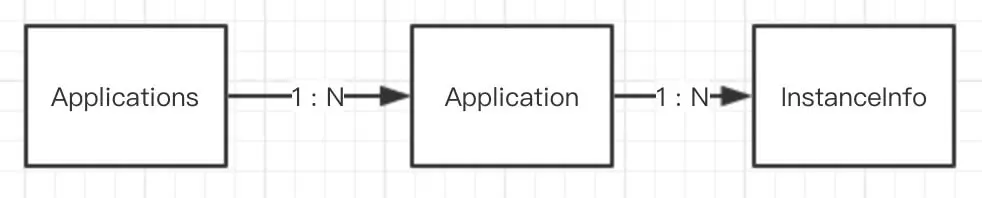 com.netflix.discovery.shared.Applications,注册的应用集合。较为容易理解,点击 链接 链接查看带中文注释的类,这里就不啰嗦了。Applications 与 InstanceInfo 类关系如下: -